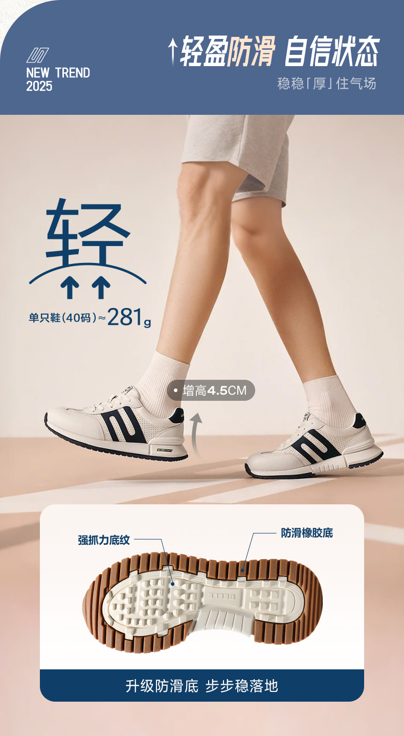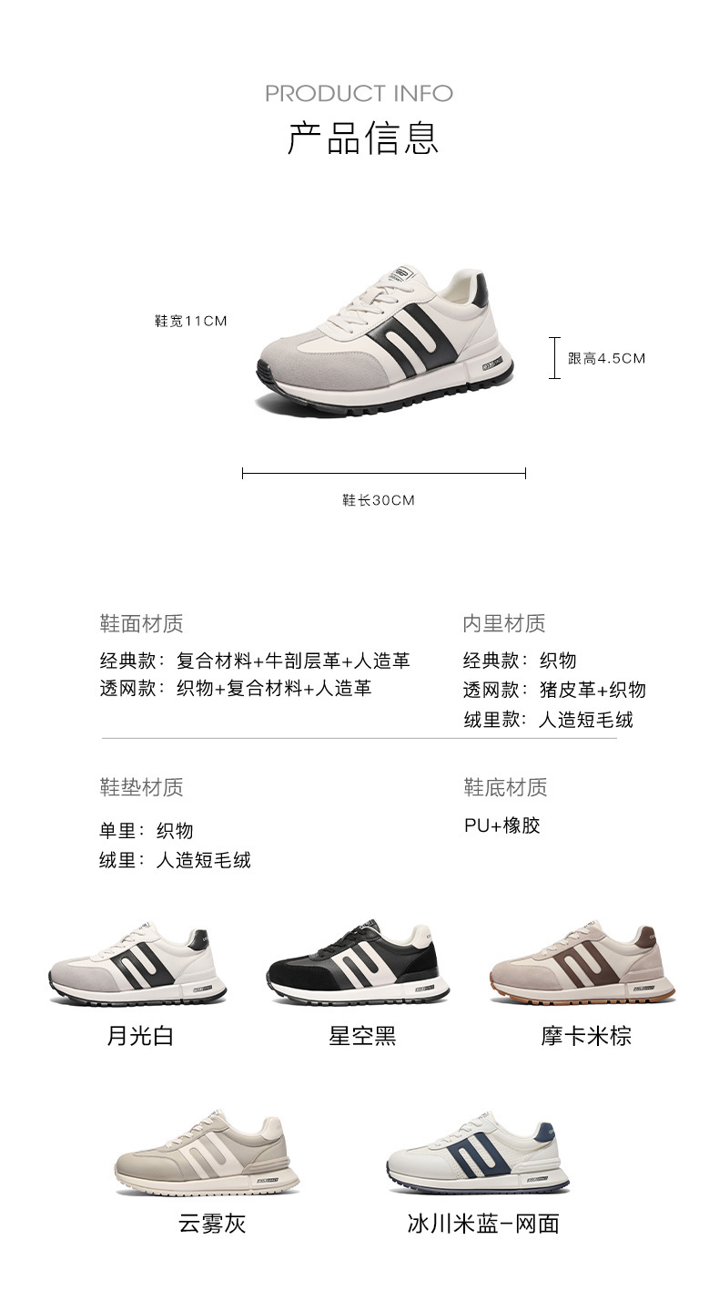 | 风格:运动休闲 | 色系:白色 | 跟高数值:4.5CM | 40码鞋宽参考(男):11CM | 性别:男子 |
