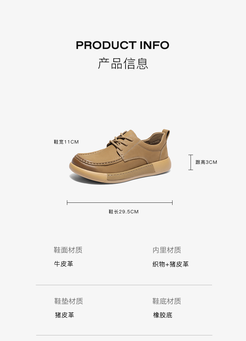 | 鞋面材质:牛皮革 | 适用场合:日常休闲 | 闭合方式:系带 | 所在区域:省仓 | 40码鞋宽参考(男):8CM |