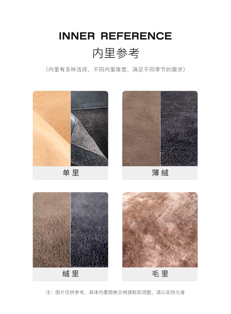 | 40码鞋长参考(男):27CM | 鞋头款式:圆头 | 鞋底材质:发泡底 | 鞋面图案:纯色 | 靴筒内里材质:猪皮革织物面料 |