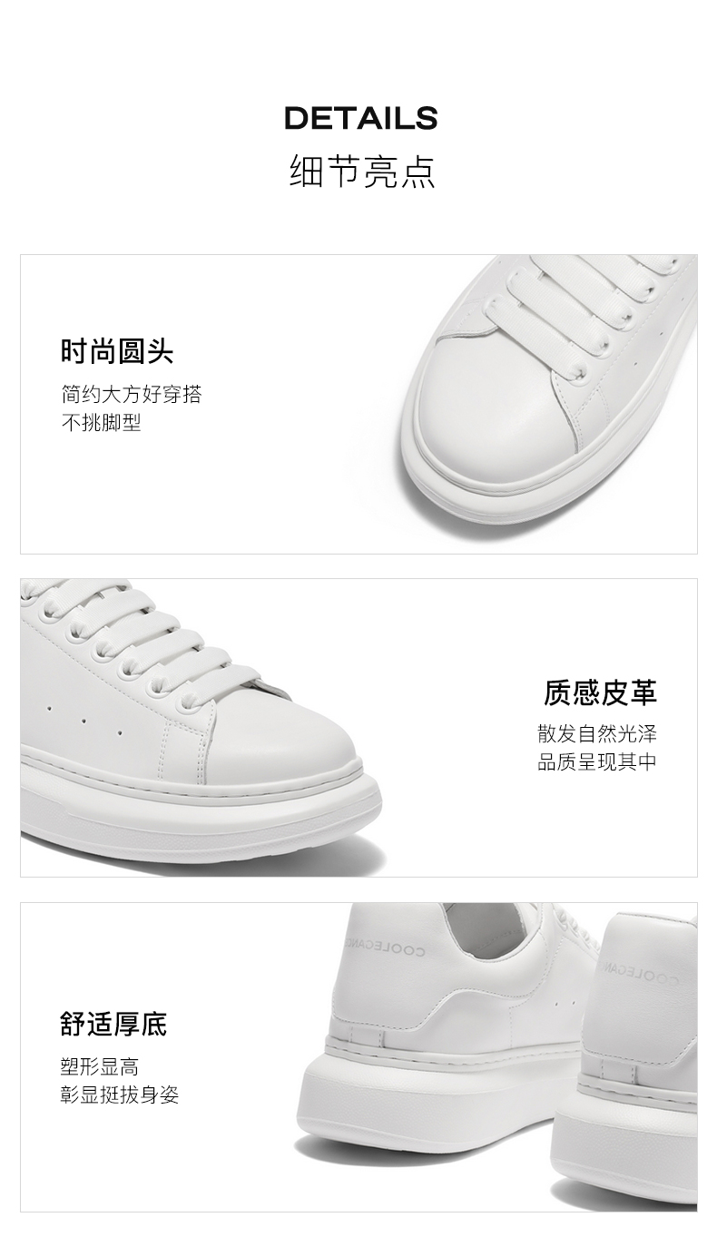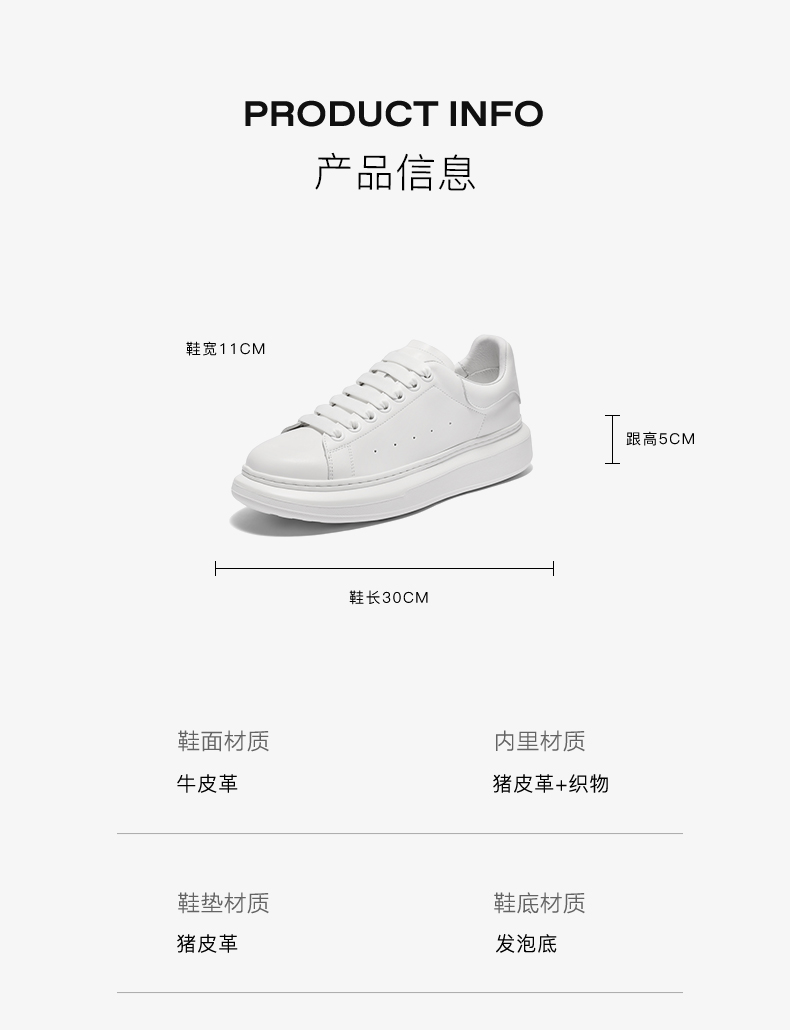 | 风格:休闲 | 色系:白色 | 跟高数值:5CM | 40码鞋宽参考(男):11CM | 性别:男子 |
