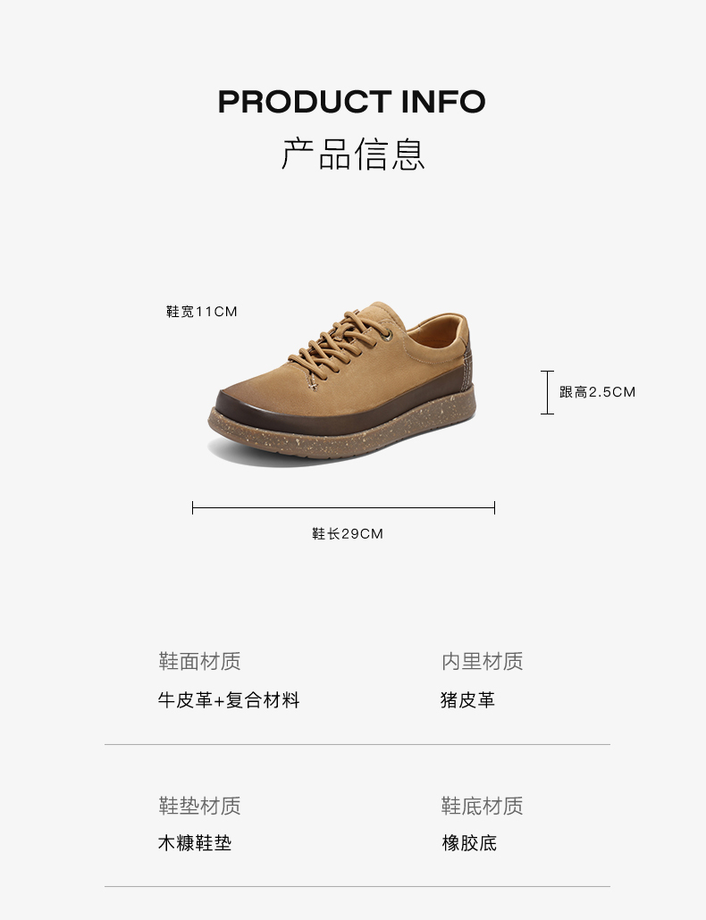 | 鞋面材质:复合材料牛皮革 | 适用场合:日常休闲 | 闭合方式:系带 | 所在区域:省仓 | 40码鞋宽参考(男):11CM |
