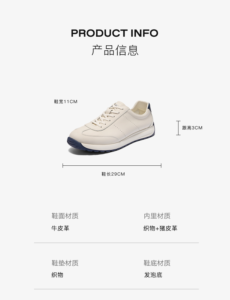 | 风格:休闲 | 色系:白色 | 跟高数值:3CM | 40码鞋宽参考(男):11CM | 性别:男子 |