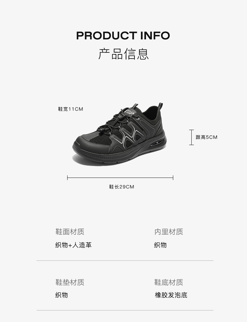 | 风格:休闲 | 色系:黑色 | 跟高数值:5CM | 40码鞋宽参考(男):11CM | 性别:男子 |