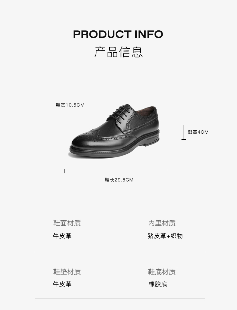 | 风格:商务 | 色系:棕色 | 跟高数值:4CM | 40码鞋宽参考(男):10.5CM | 性别:男子 |
