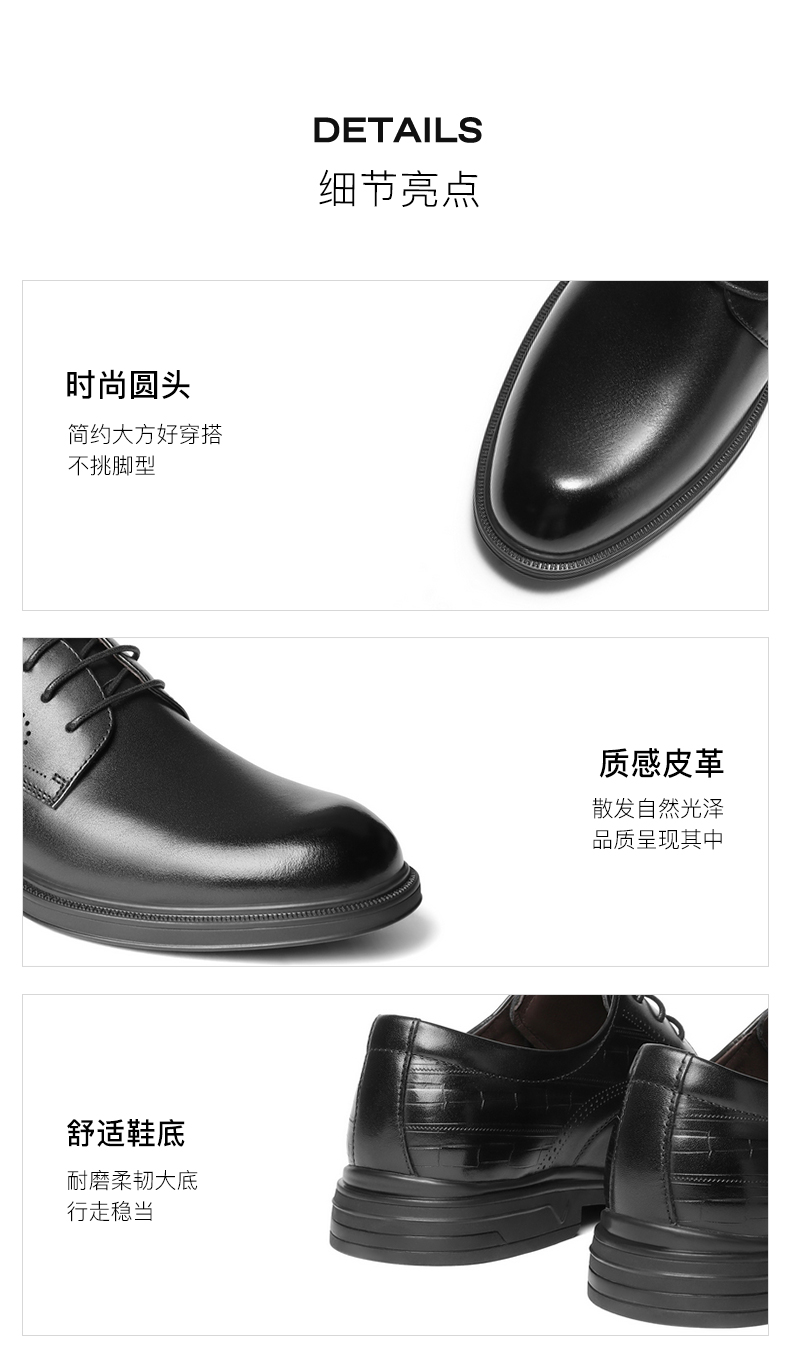| 风格:商务 | 色系:黑色 | 跟高数值:3CM | 40码鞋宽参考(男):10.5CM | 性别:男子 |