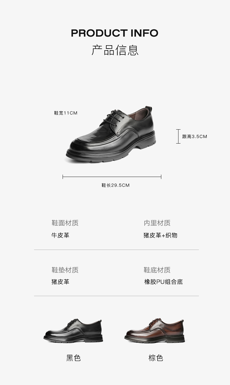 | 风格:休闲 | 色系:棕色 | 跟高数值:3.5CM | 40码鞋宽参考(男):11CM | 性别:男子 |