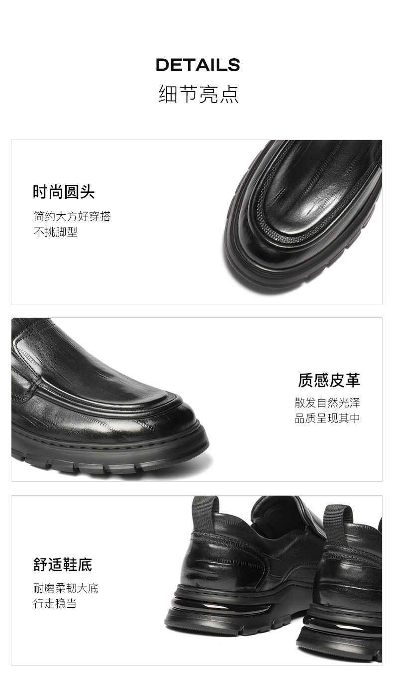| 内增高:无 | 鞋跟形状:厚底 | 鞋面材质:牛皮革 | 流行元素:素面 | 闭合方式:套脚 |