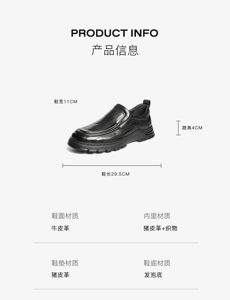 | 风格:休闲 | 色系:黑色 | 跟高数值:4CM | 40码鞋宽参考(男):11CM | 性别:男子 |