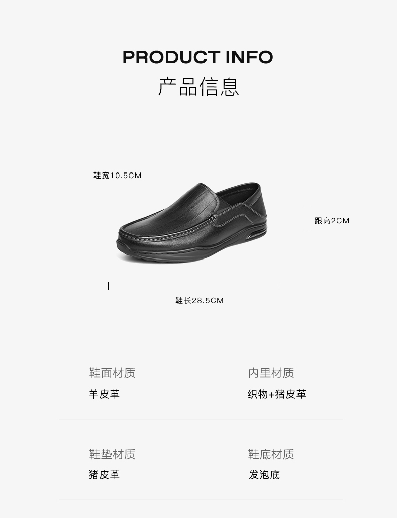 | 风格:休闲 | 色系:黑色 | 跟高数值:2CM | 40码鞋宽参考(男):10.5CM | 性别:男子 |