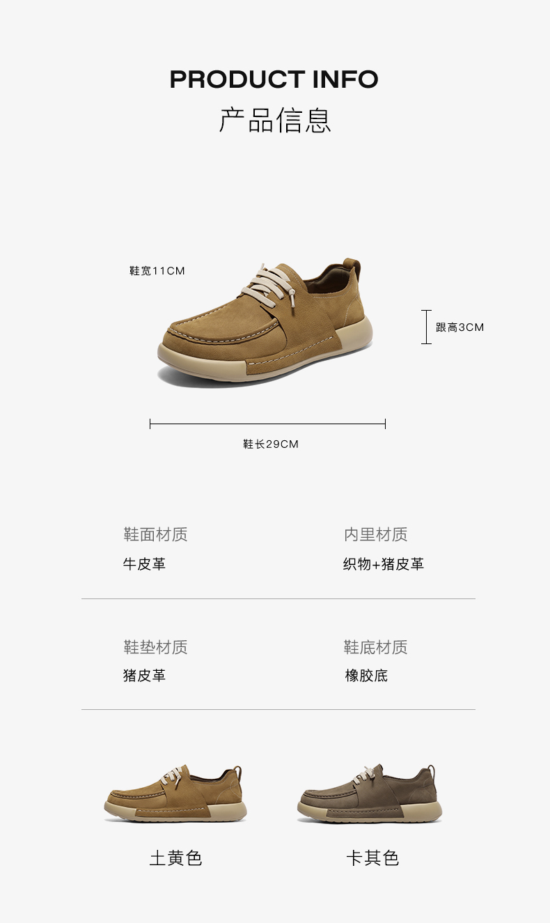| 风格:休闲 | 色系:卡其 | 跟高数值:3CM | 40码鞋宽参考(男):11CM | 性别:男子 |
