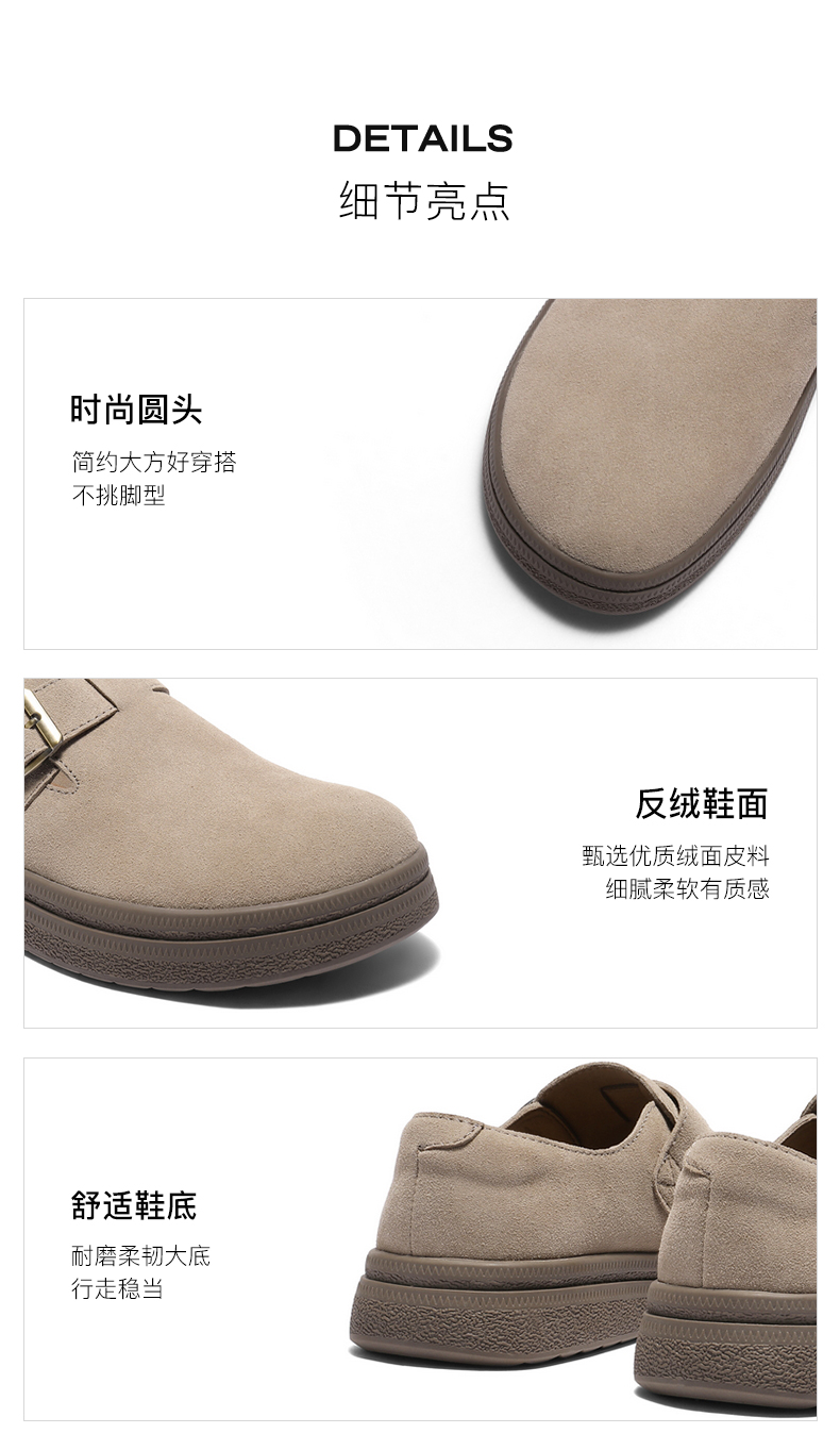 | 内增高:无 | 鞋跟形状:平跟 | 鞋面材质:牛剖层革 | 流行元素:纯色 | 闭合方式:套脚 |