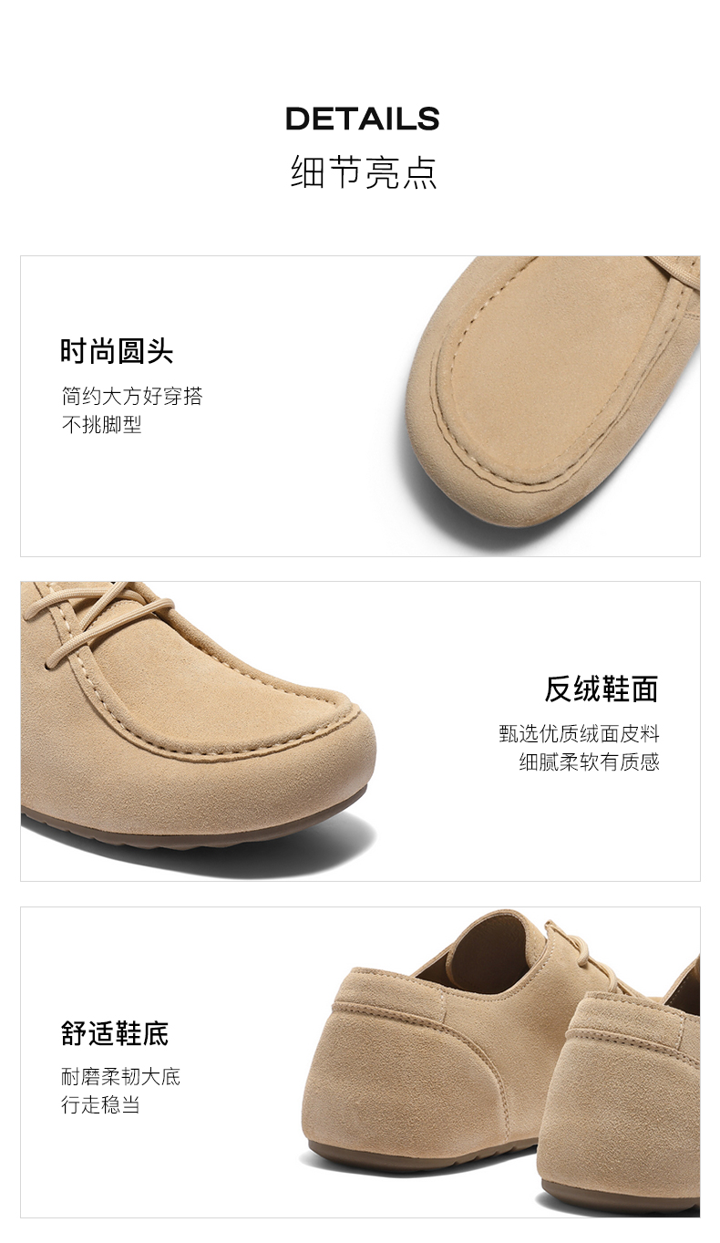 | 内增高:无 | 鞋跟形状:平跟 | 鞋面材质:牛剖层革 | 流行元素:纯色 | 闭合方式:系带 |
