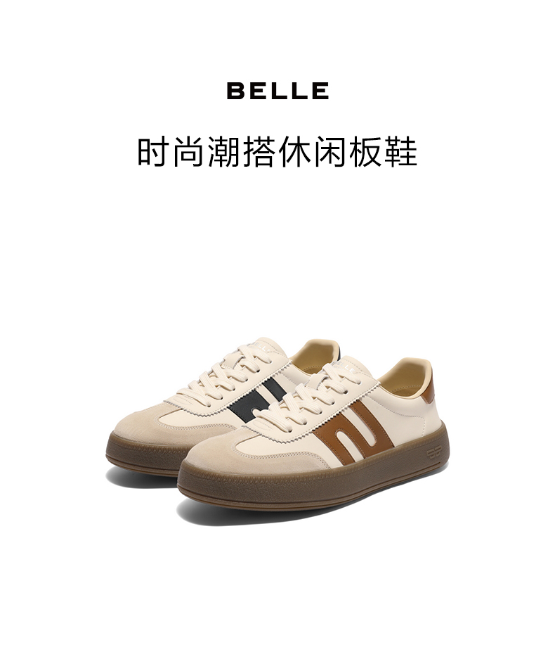 • 百丽时尚撞色休闲板鞋男2025新款秋季商场同款厚底德训鞋8UD01CM5