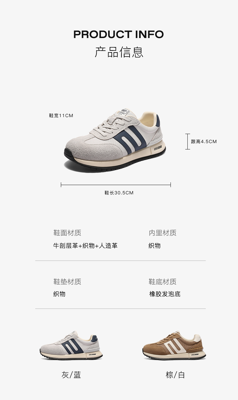 | 风格:休闲 | 色系:灰色 | 跟高数值:4.5CM | 40码鞋宽参考(男):11CM | 性别:男子 |