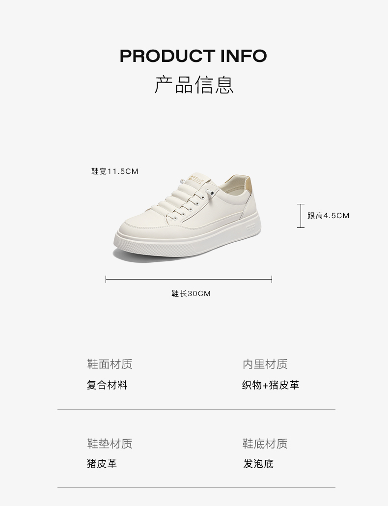 | 风格:休闲 | 色系:白色 | 跟高数值:4.5CM | 40码鞋宽参考(男):11.5CM | 性别:男子 |