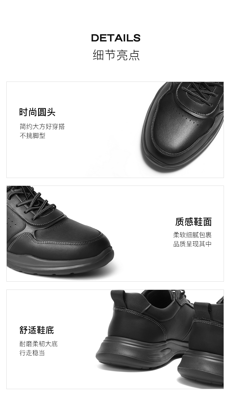 | 风格:休闲 | 色系:黑色 | 跟高数值:3.5CM | 40码鞋宽参考(男):11CM | 性别:男子 |