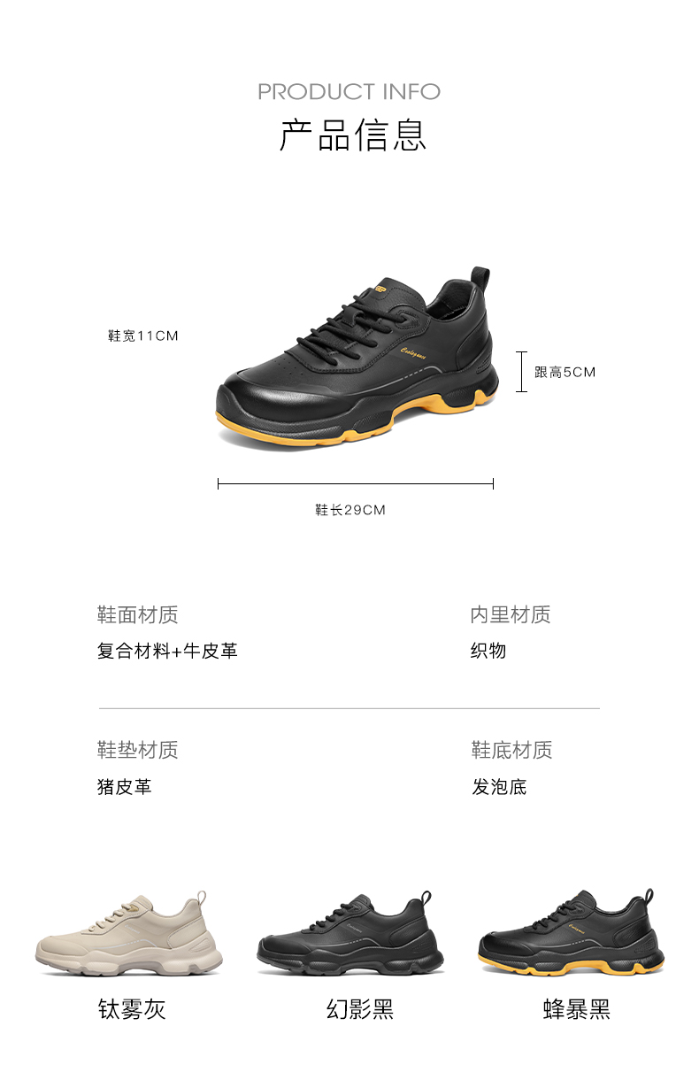 | 内增高:无 | 鞋跟形状:厚底 | 鞋面材质:牛皮革复合材料 | 流行元素:纯色 | 闭合方式:系带 |