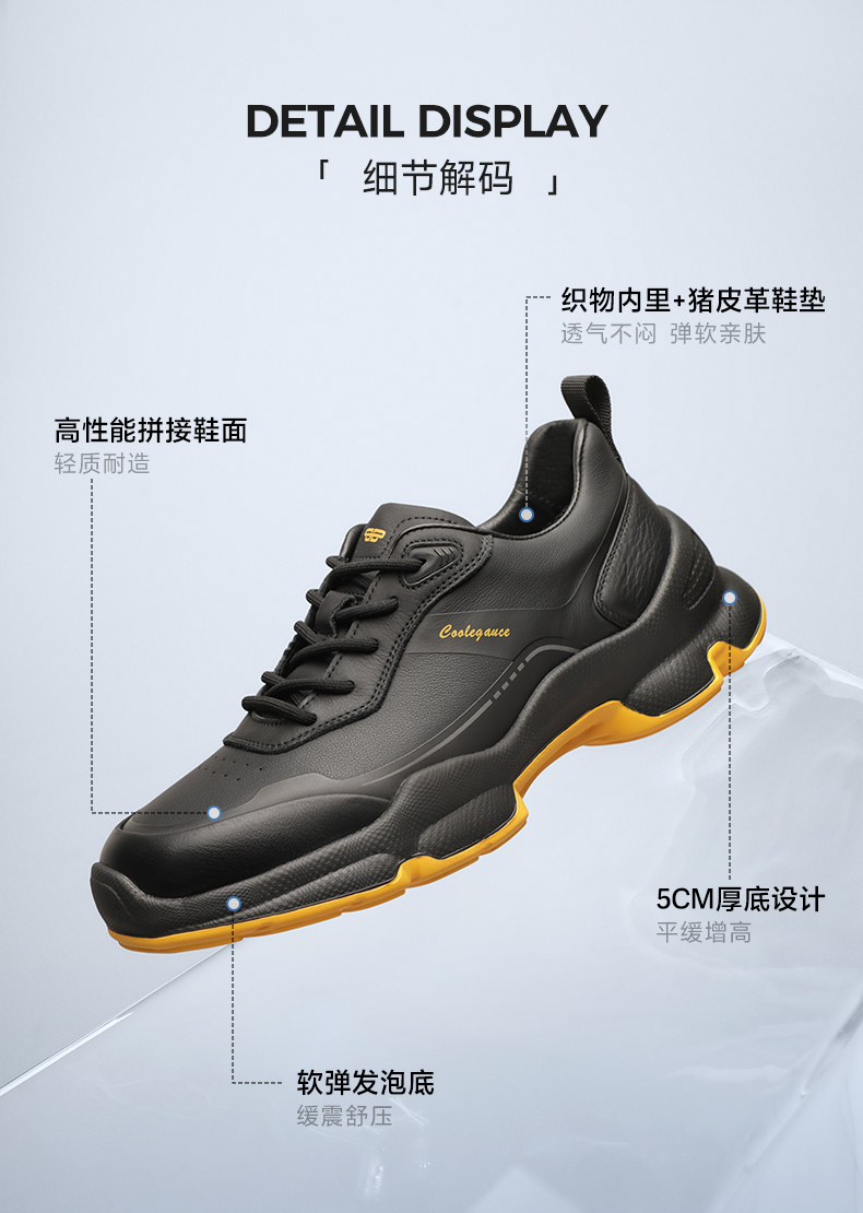 | 风格:运动 | 色系:黑色 | 跟高数值:5CM | 40码鞋宽参考(男):11.5CM | 性别:男子 |
