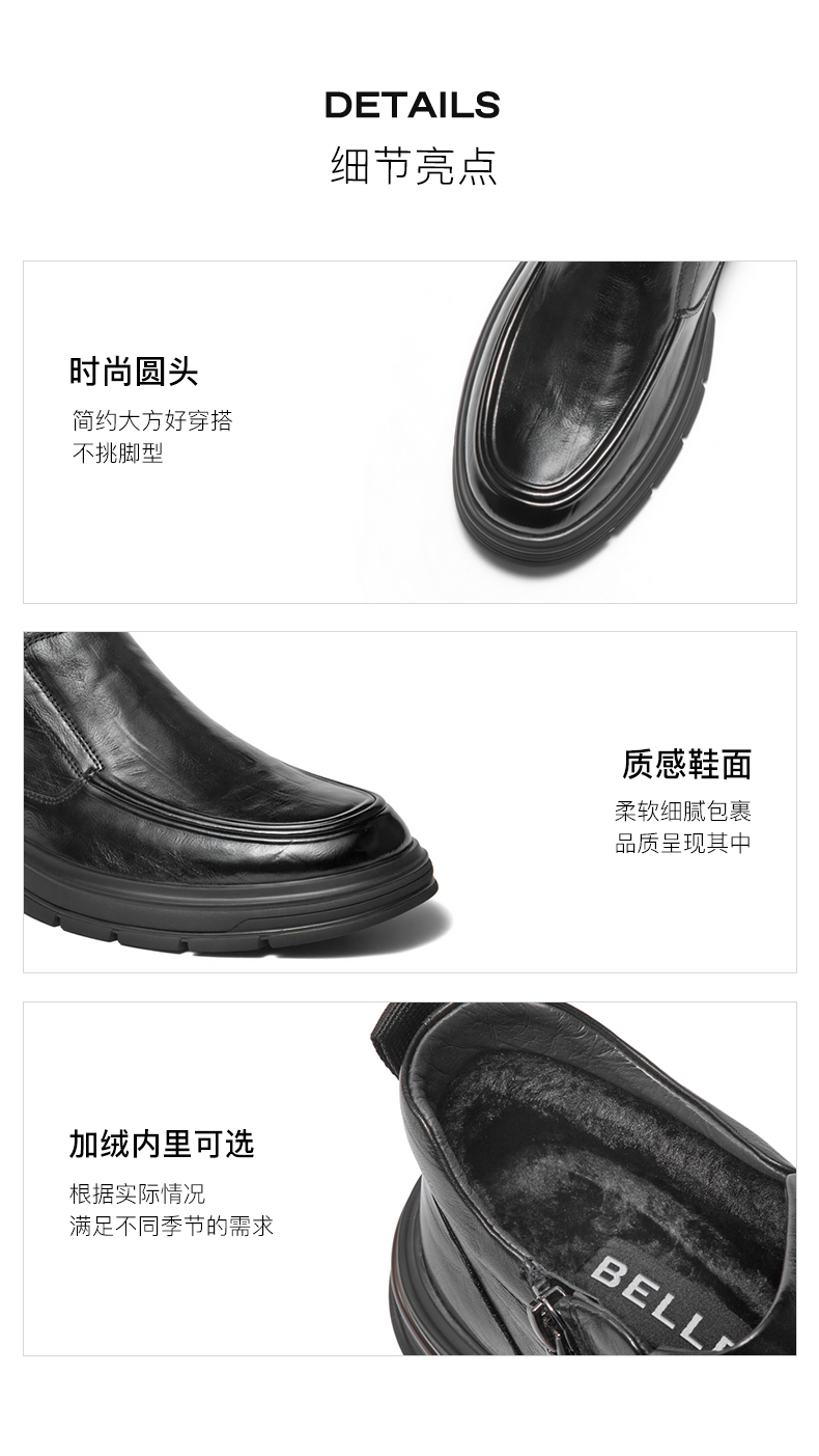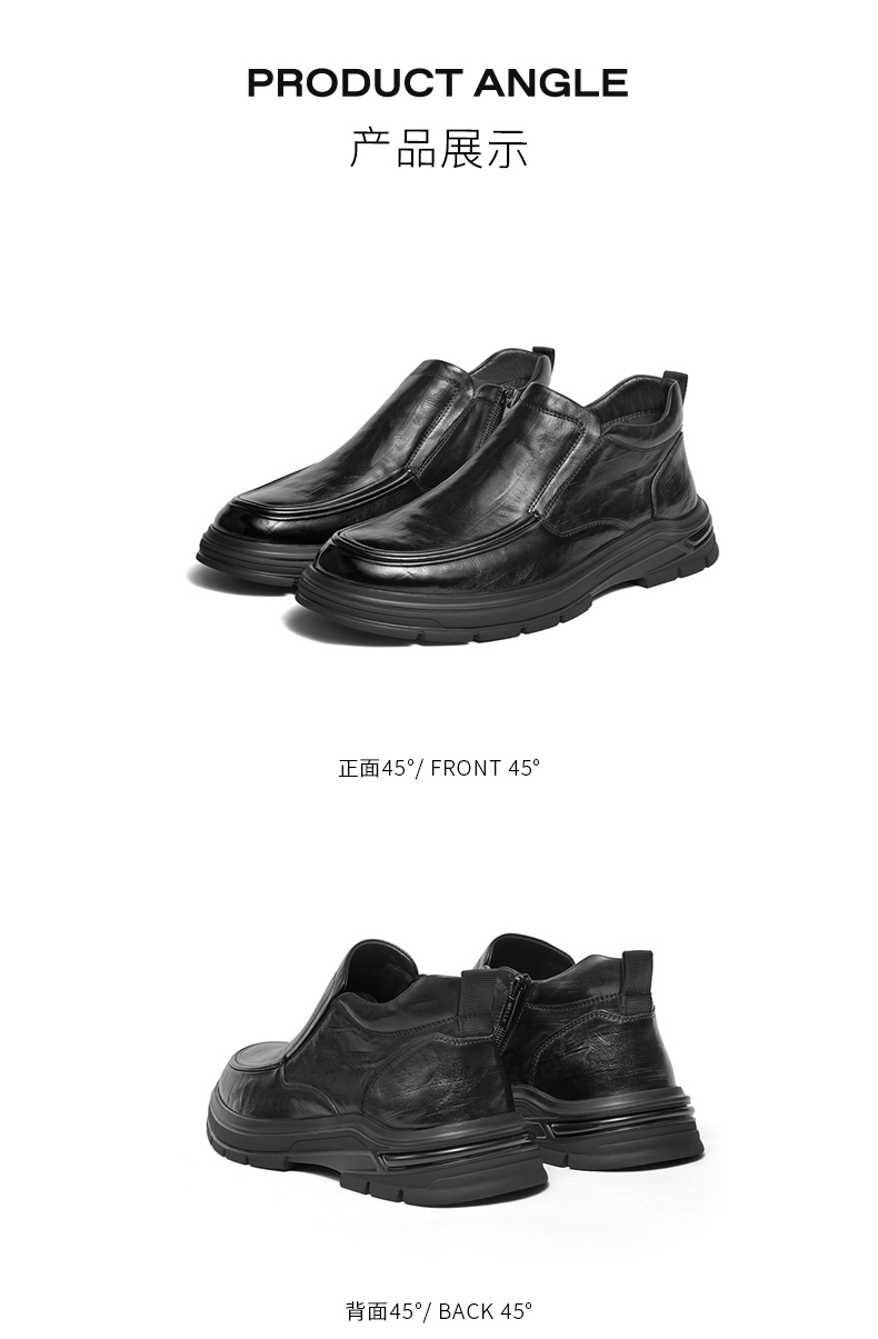 | 内增高:无 | 鞋跟形状:厚底 | 鞋面材质:牛皮革 | 流行元素:纯色 | 闭合方式:侧拉链 |