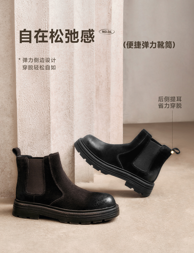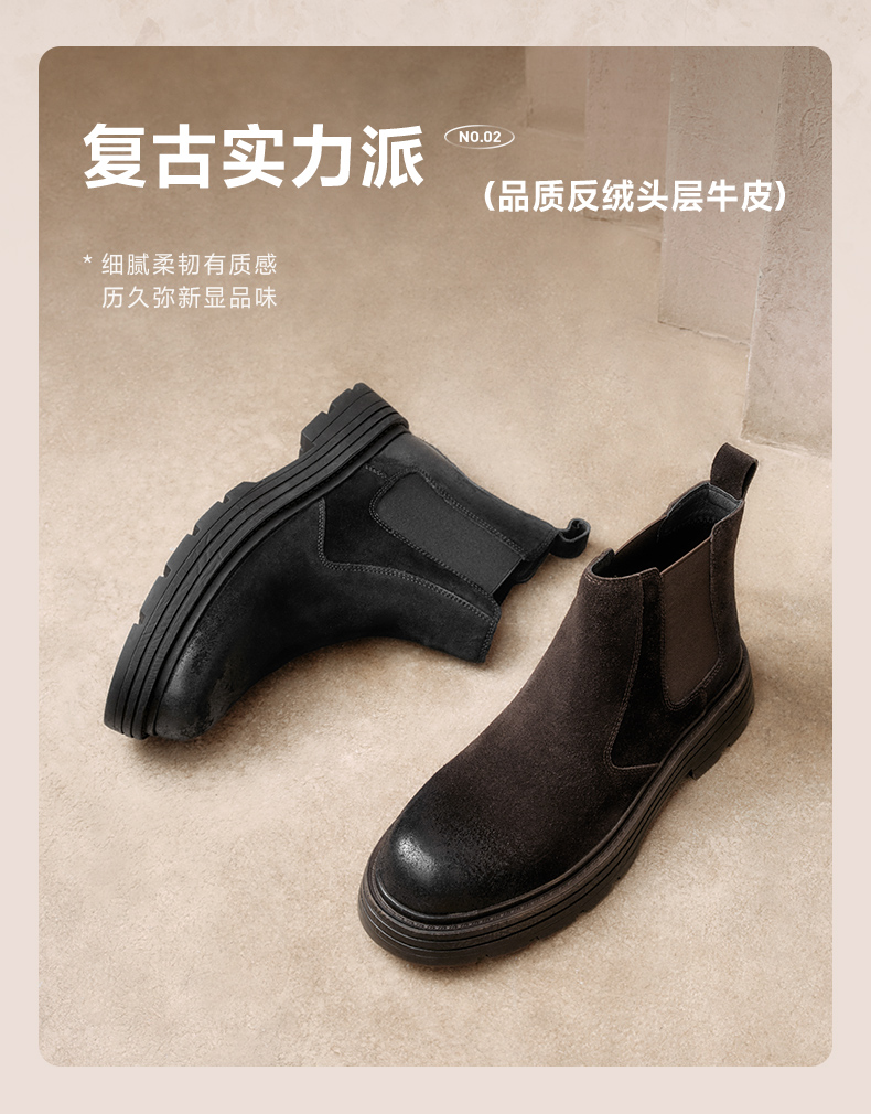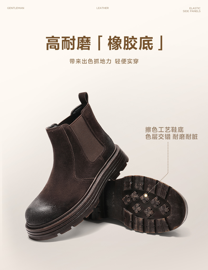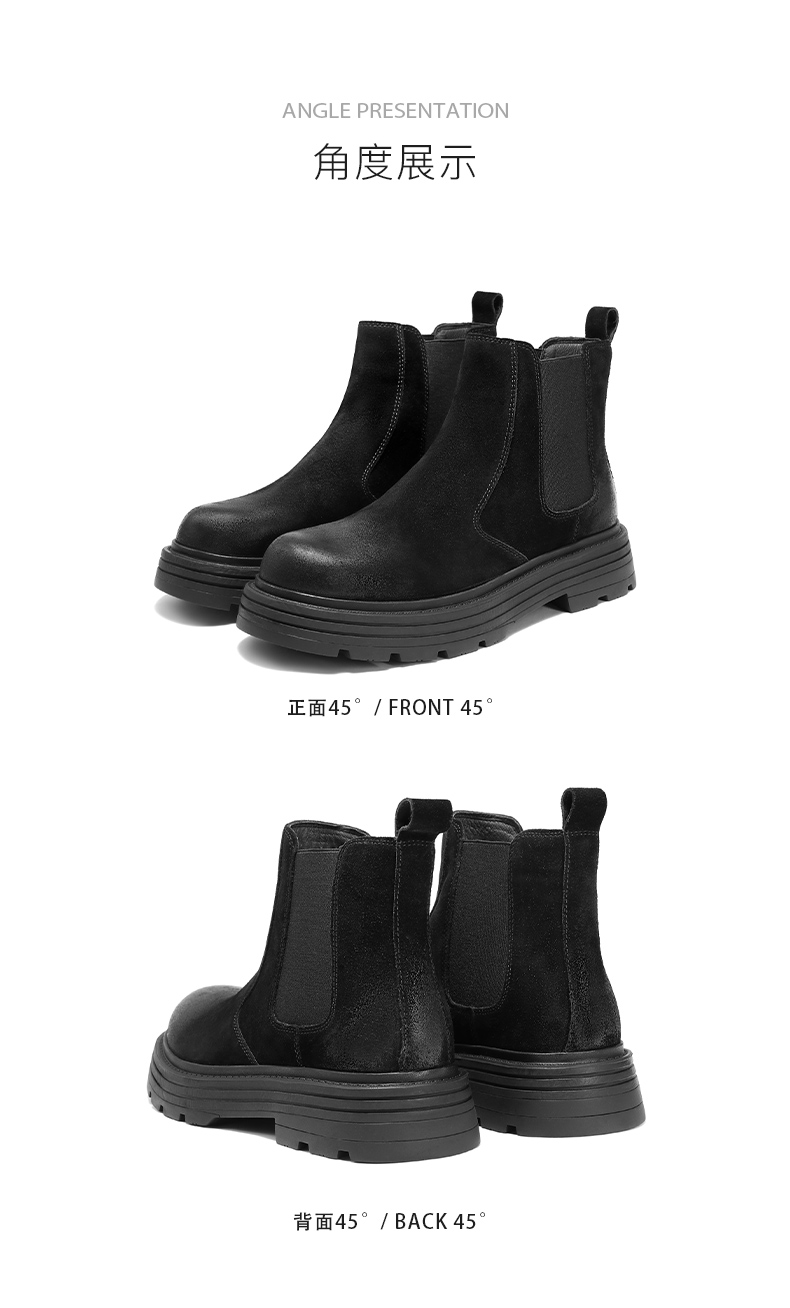 | 制鞋工艺:胶贴皮鞋 | 款式季节:冬季 | 鞋垫材质:猪皮革 | 鞋类流行款式:切尔西靴 |