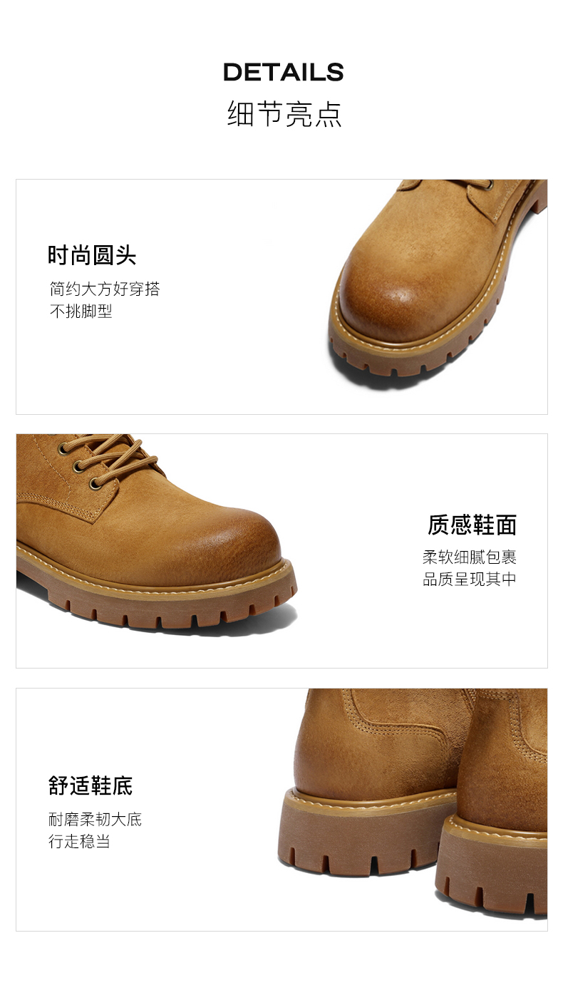 | 制鞋工艺:胶贴皮鞋 | 款式季节:冬季 | 鞋垫材质:人造短毛绒 | 鞋类流行款式:工装靴 |
