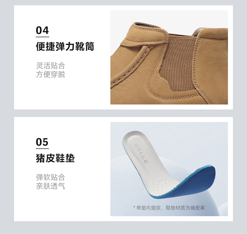 | 制鞋工艺:缝制鞋 | 款式季节:冬季 | 鞋垫材质:猪皮革 | 鞋类流行款式:切尔西靴 |