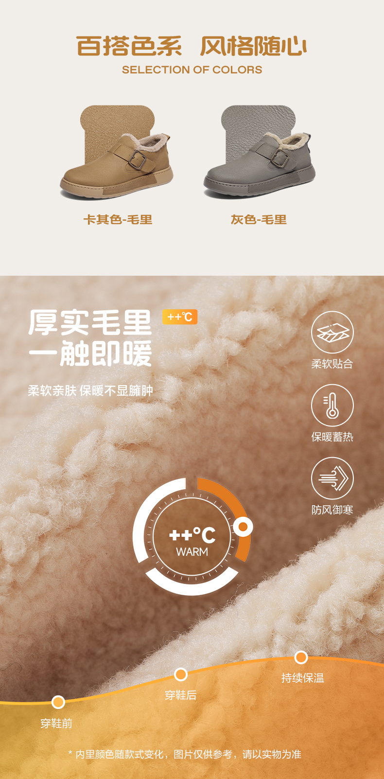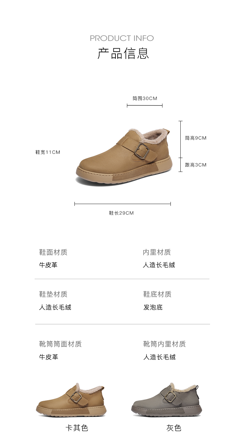 | 40码鞋长参考(男):29CM | 鞋头款式:圆头 | 鞋底材质:发泡底 | 鞋面图案:纯色 | 靴筒内里材质:人造长毛绒 |