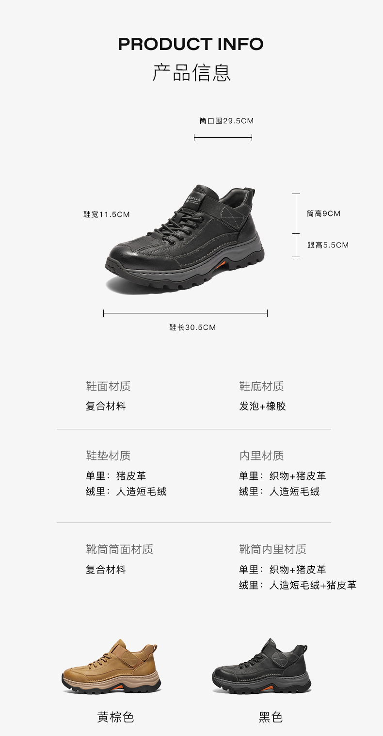 | 40码鞋长参考(男):30.5CM | 鞋头款式:圆头 | 鞋底材质:发泡底 | 鞋面图案:纯色 | 靴筒内里材质:猪皮革织物面料 |