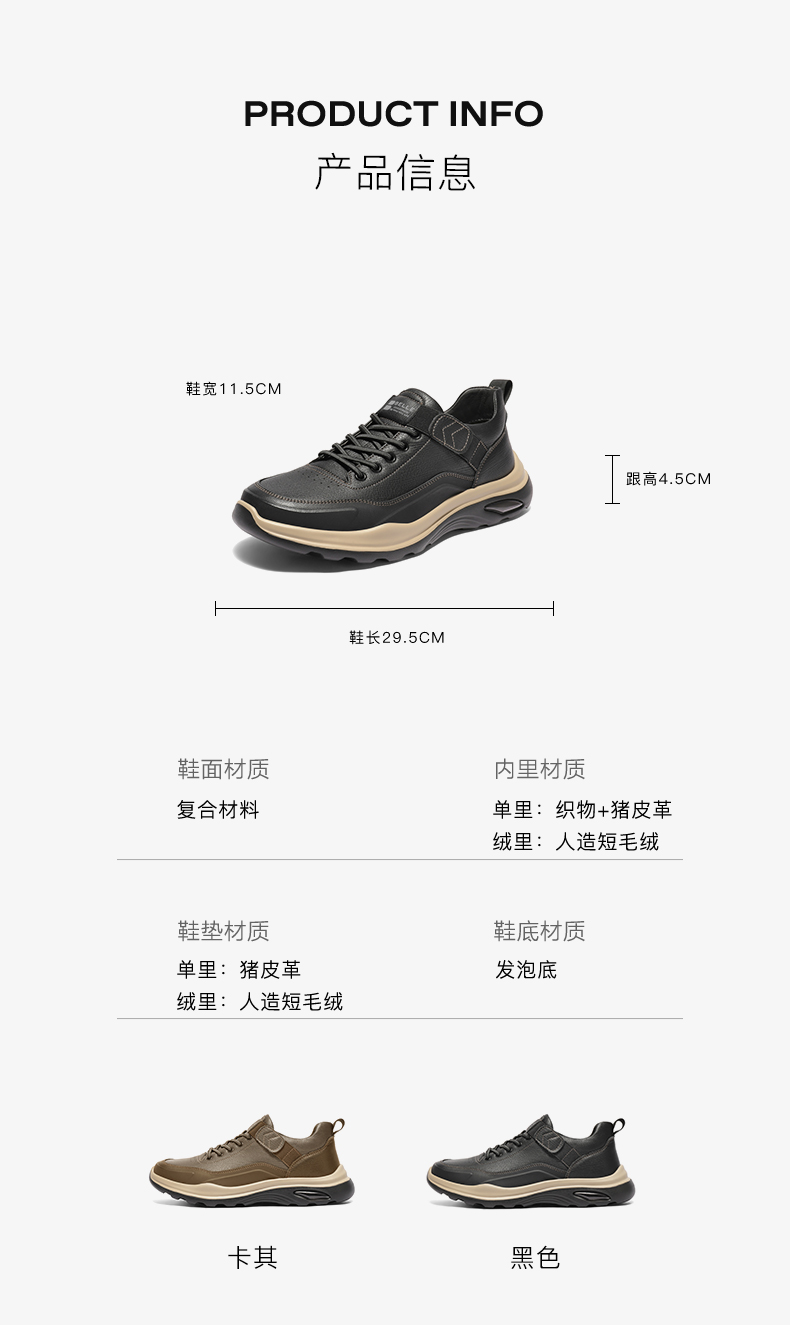 | 风格:休闲 | 色系:黑色 | 跟高数值:4.5CM | 40码鞋宽参考(男):11.5CM | 性别:男子 |