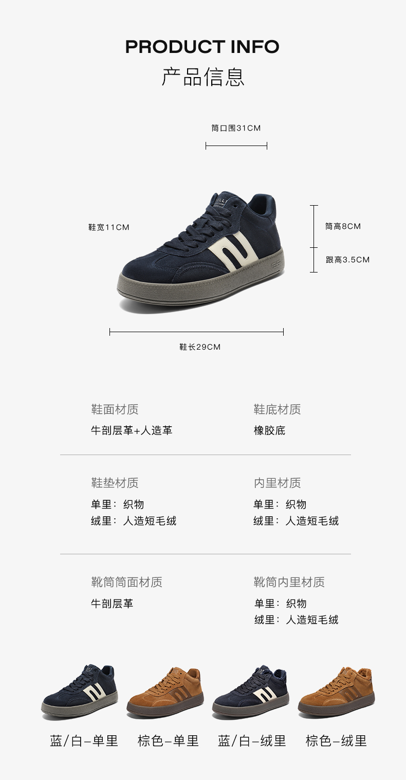 | 性别:男子 | 靴筒口围:31CM | 靴筒筒面材质:牛剖层革 | 里料材质:织物 | 上市时间:2025年冬季 |