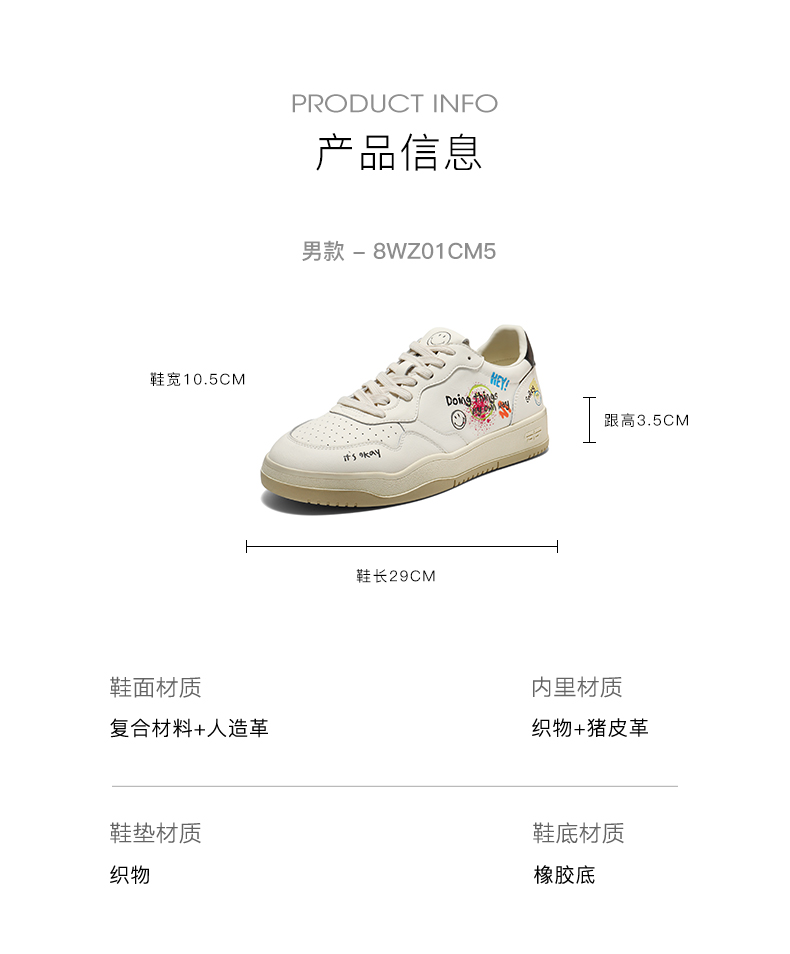 | 40码鞋长参考(男):29CM | 鞋帮:低帮 | 鞋头款式:圆头 | 鞋底材质:橡胶底 | 鞋面图案:拼色 |