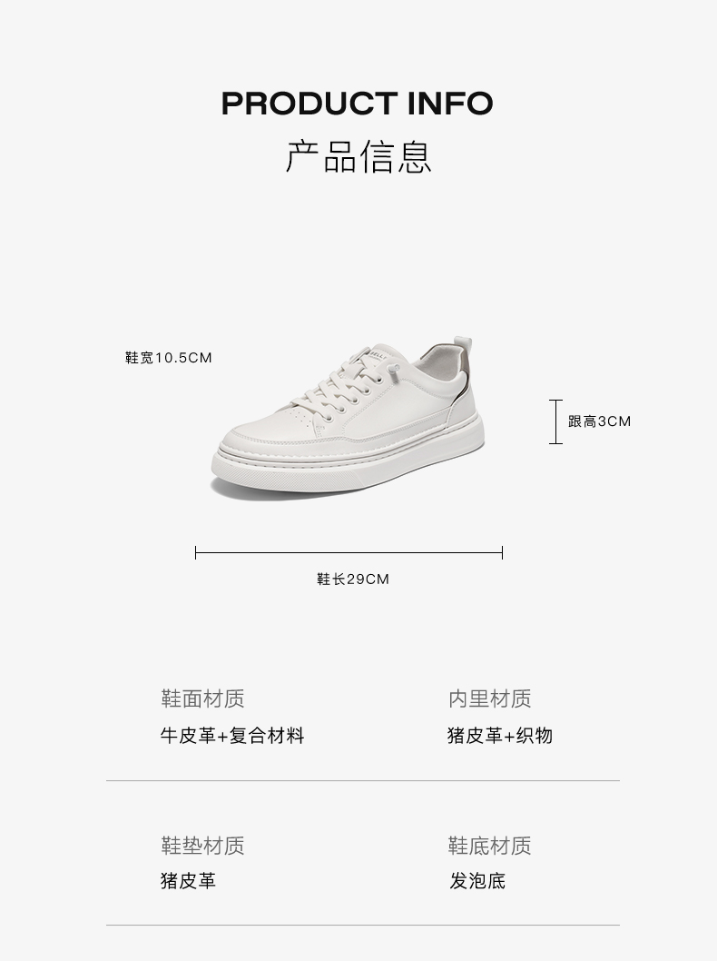 | 风格:休闲 | 色系:白色 | 跟高数值:3CM | 40码鞋宽参考(男):10.5CM | 性别:男子 |