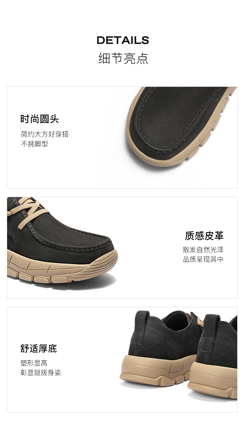 | 风格:休闲 | 色系:黑色 | 跟高数值:5.5CM | 40码鞋宽参考(男):11.5CM | 性别:男子 |