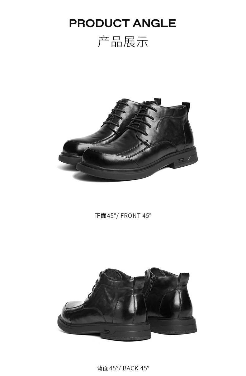 | 风格:休闲 | 色系:黑色 | 跟高数值:3CM | 40码鞋宽参考(男):11.5CM | 筒高数值:9.5CM |