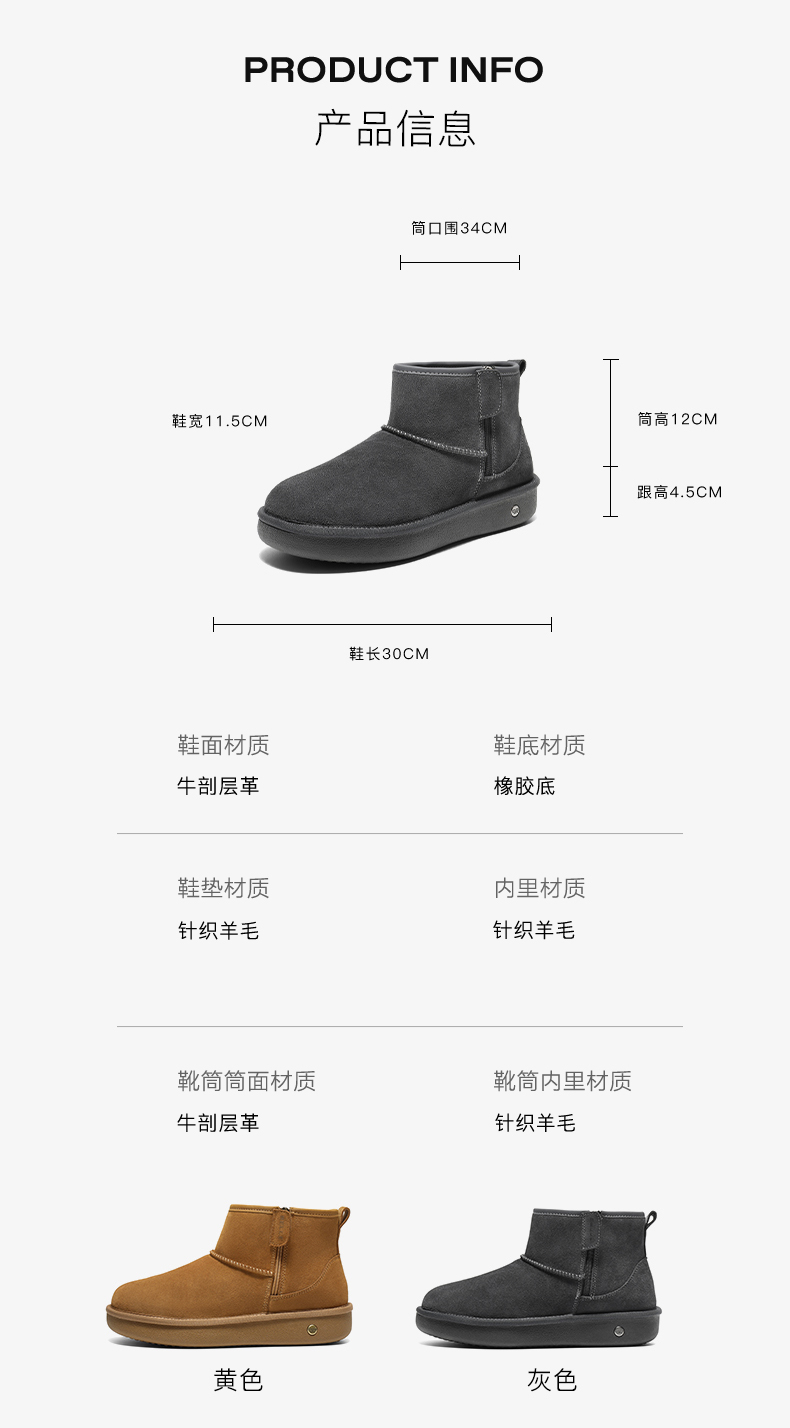 | 制鞋工艺:胶贴皮鞋 | 款式季节:冬季 | 鞋垫材质:针织羊毛 | 鞋类流行款式:雪地靴 |