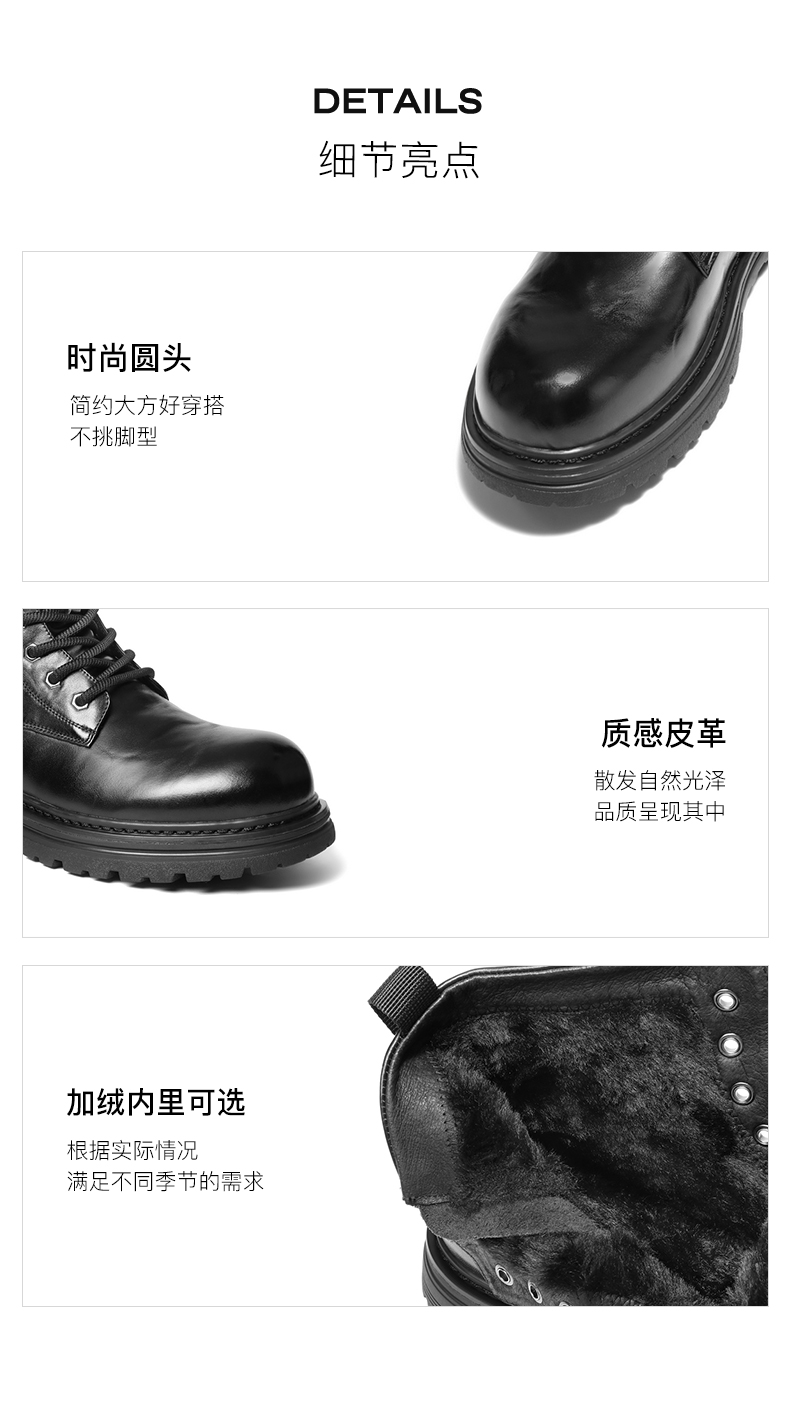 | 制鞋工艺:缝制鞋 | 款式季节:冬季 | 鞋垫材质:猪皮革 | 鞋类流行款式:马丁靴 |