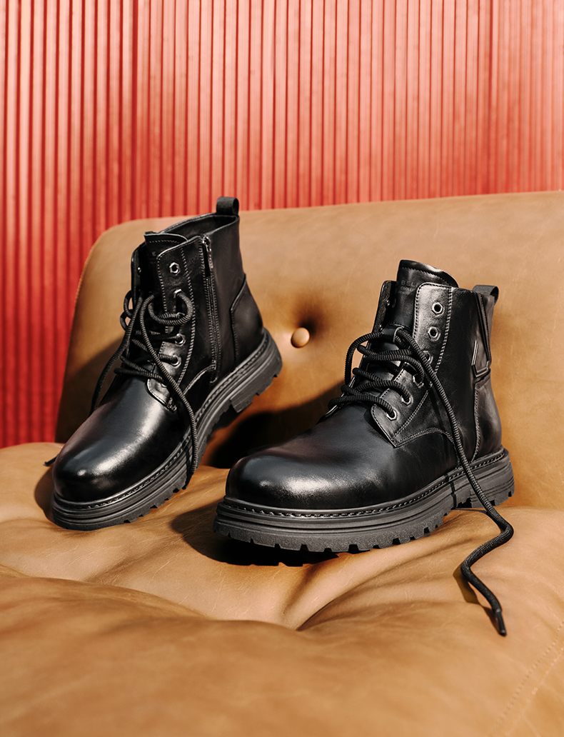 | 风格:休闲 | 色系:黑色 | 跟高数值:4CM | 40码鞋宽参考(男):11.5CM | 筒高数值:12.5CM |