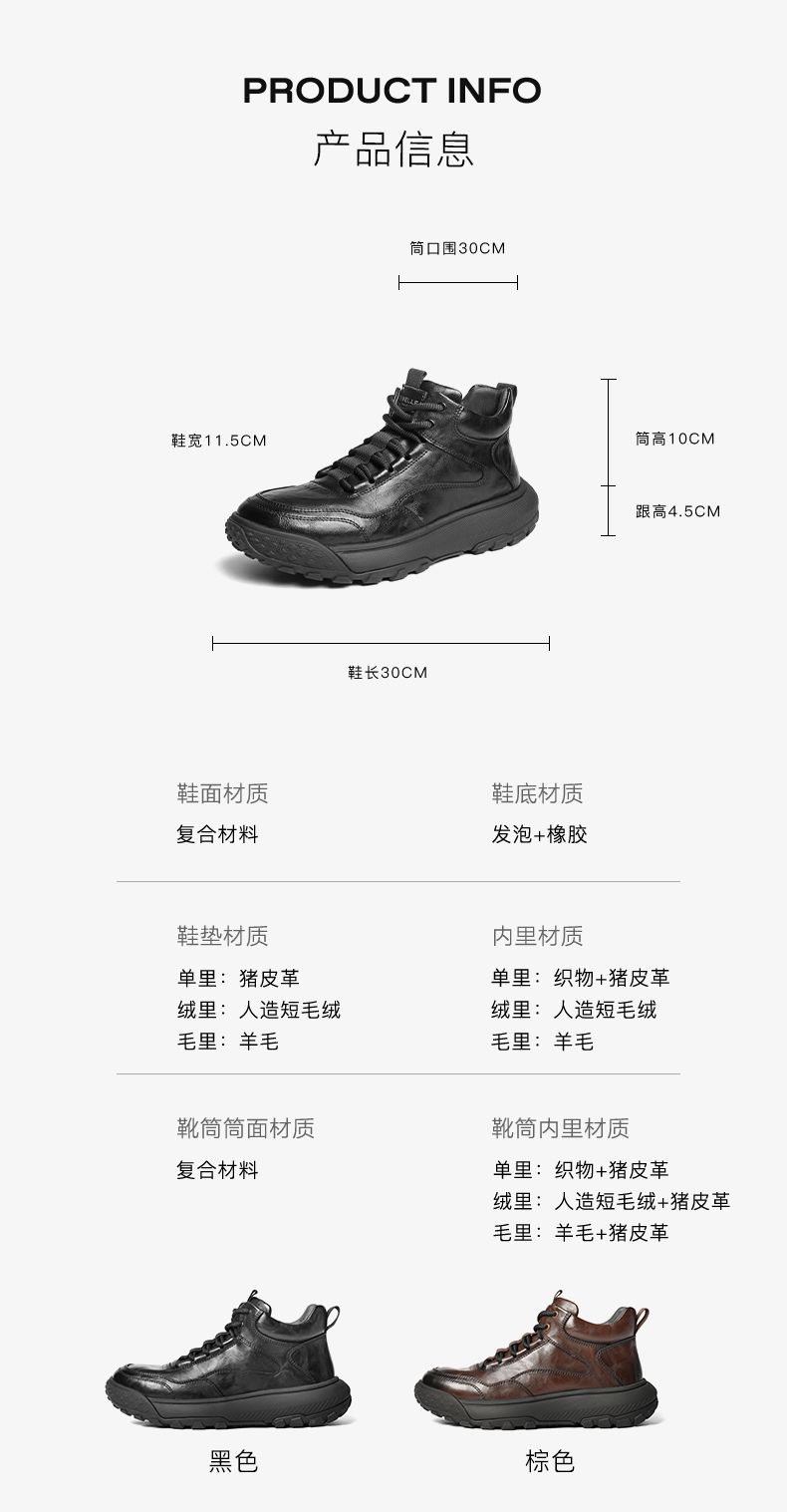 | 性别:男子 | 靴筒口围:30CM | 靴筒筒面材质:复合材料 | 里料材质:人造短毛绒 | 上市时间:2025年冬季 |