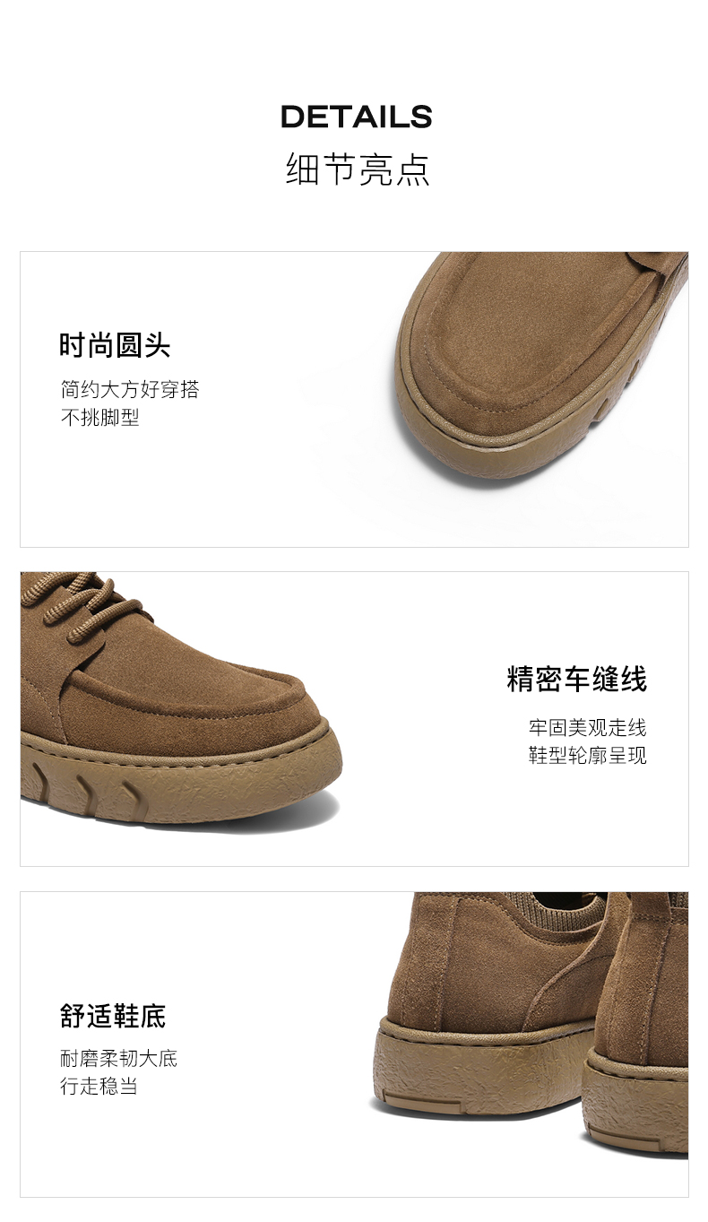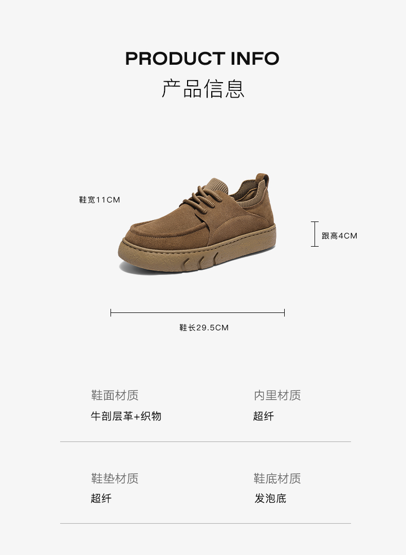 | 风格:休闲 | 色系:咖啡色 | 跟高数值:4CM | 40码鞋宽参考(男):11CM | 性别:男子 |