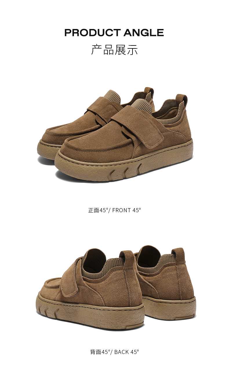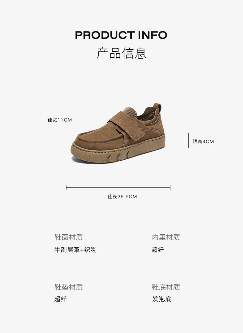 | 内增高:无 | 鞋跟形状:厚底 | 鞋面材质:牛剖层革 | 流行元素:素面 | 闭合方式:魔术贴 |