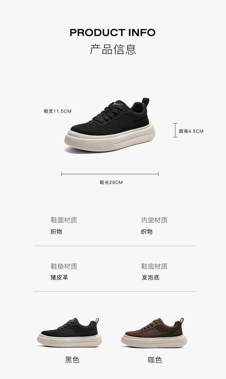 | 风格:休闲 | 色系:黑色 | 跟高数值:4.5CM | 40码鞋宽参考(男):11.5CM | 性别:男子 |