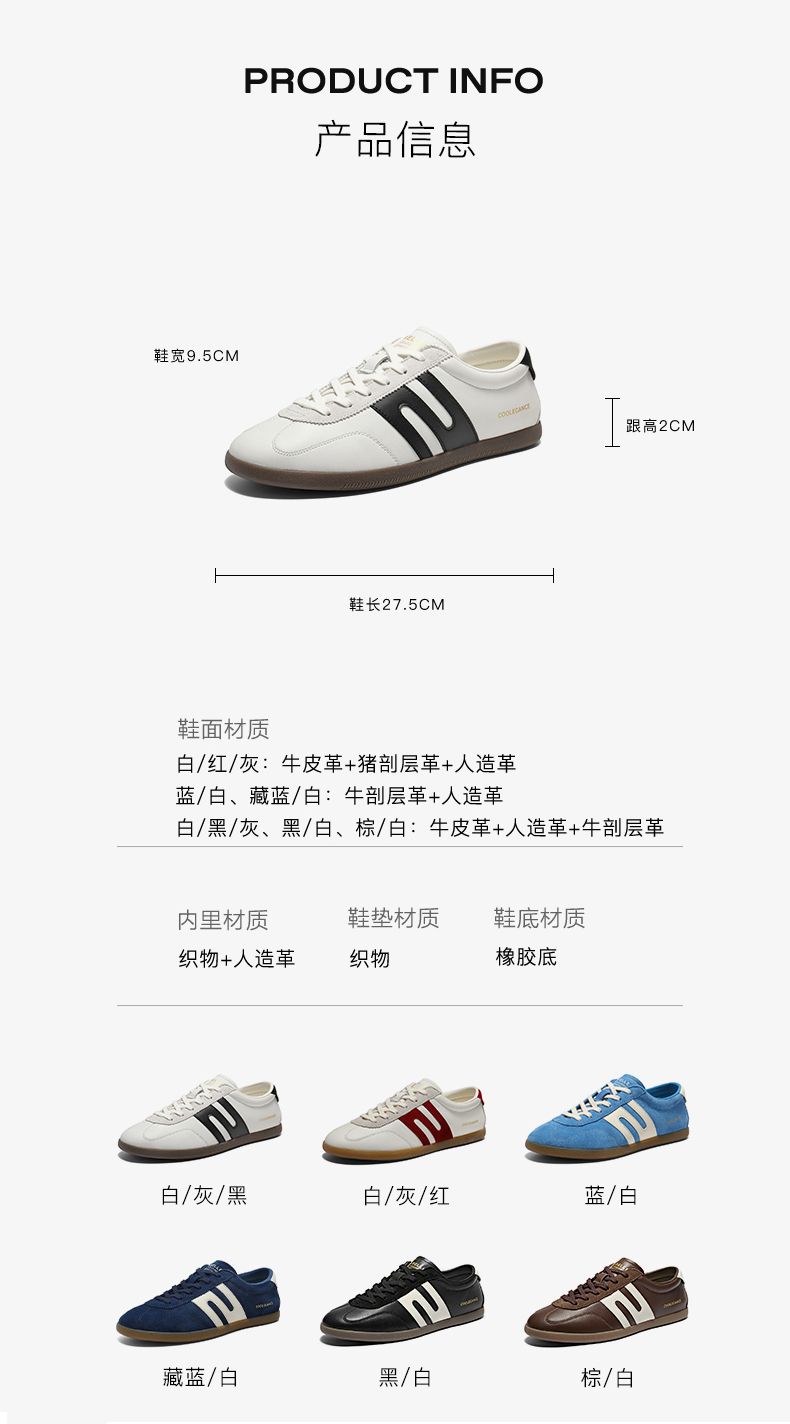 | 内增高:无 | 鞋跟形状:平跟 | 鞋面材质:人造革牛皮革牛剖层革 | 流行元素:撞色 | 闭合方式:系带 |