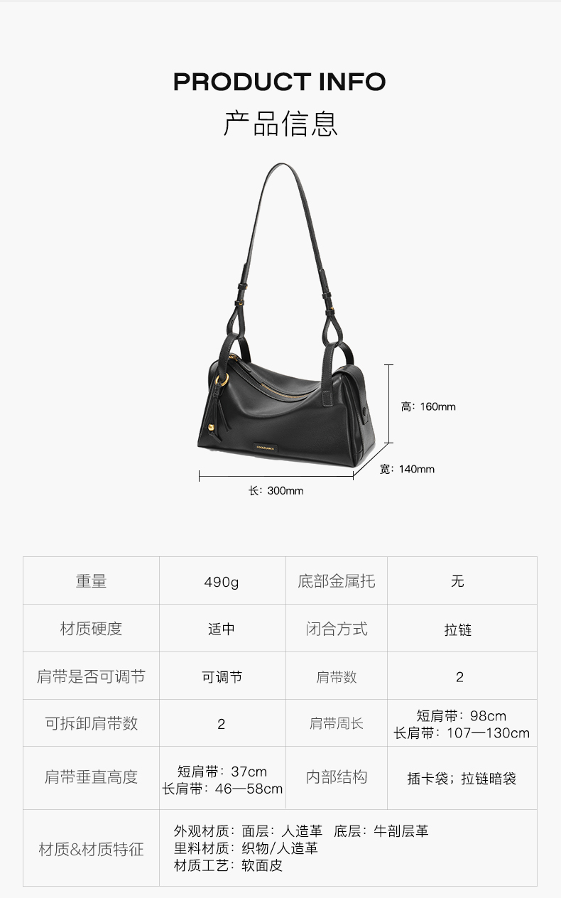 | 适用场景:通勤 | 开袋方式:拉链 | 性别:女 | 手柄高:无 | 里料材质:织物/人造革 |