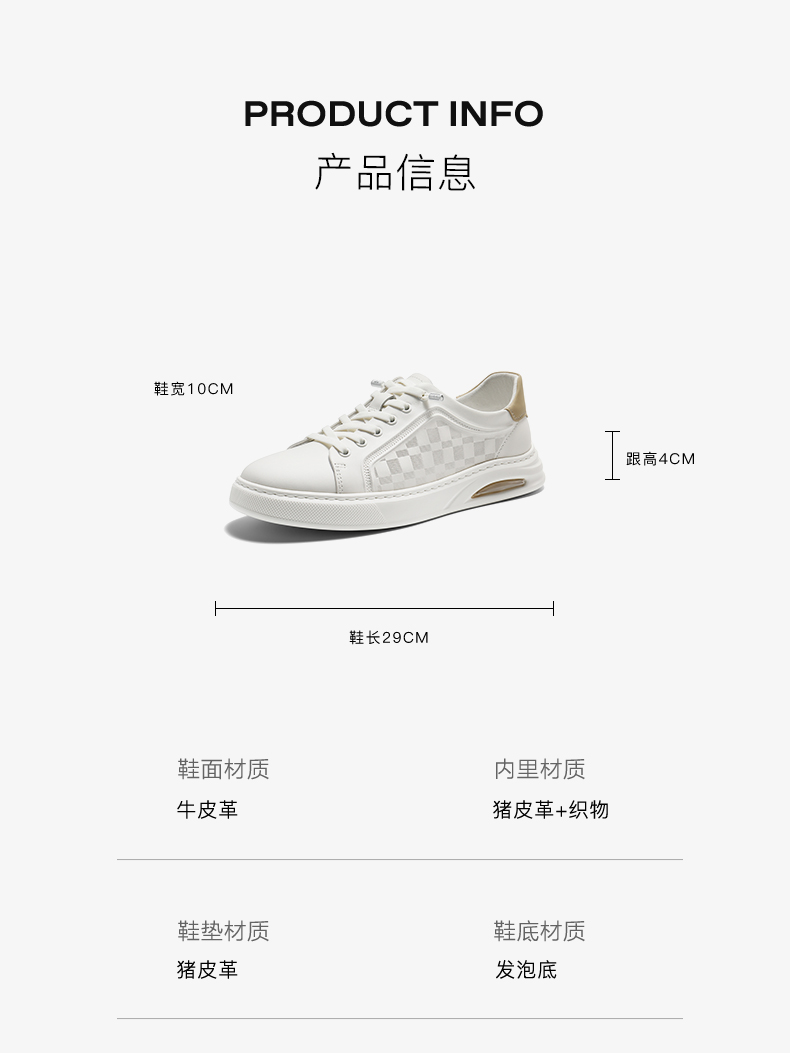 | 风格:休闲 | 色系:白色 | 跟高数值:4CM | 40码鞋宽参考(男):10CM | 性别:男子 |