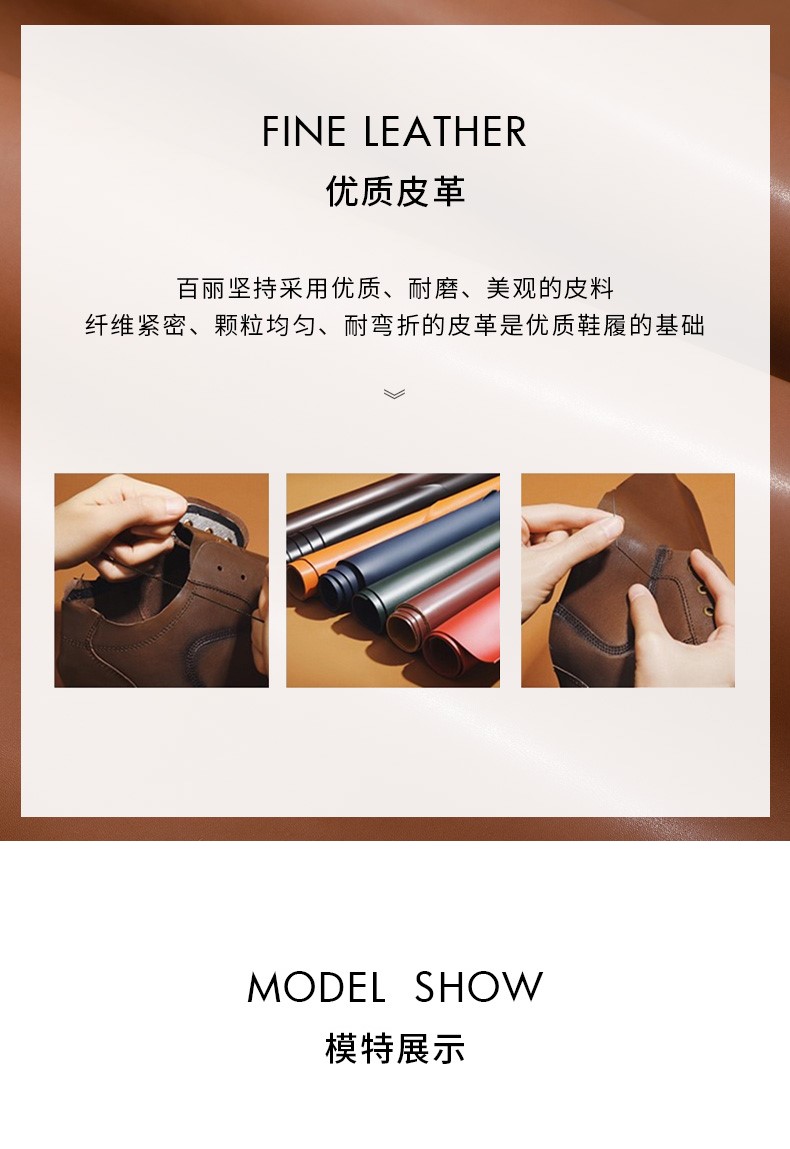 BeLLE(百丽),百变所以美丽。主张多变多元的新生代态度,不断融合潮流趋势,拥抱不同的生活体验与生活经历。将女性的百变魅力注入到鞋履设计中,让女人在不同的人生阶段,不同的场合,不同的潮流趋势下,尽显自己自信的一面。致力于为现代都市女性提供充满自由的行走体验。