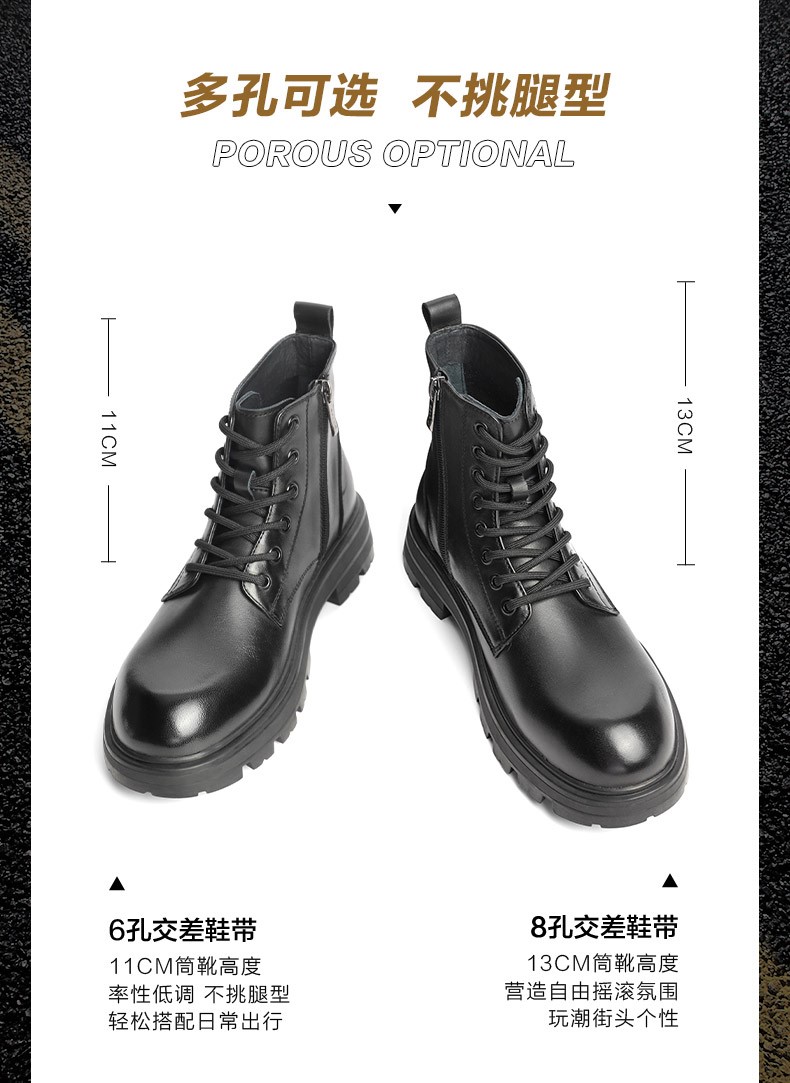 | 跟高数值:4CM | 色系:黑色 | 性别:男子 | 筒高数值:11CM | 靴筒筒面材质:牛皮革 |