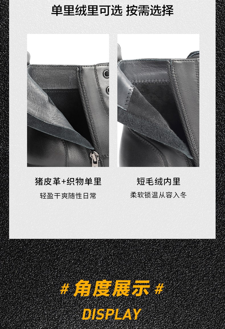 | 里料材质:织物面料猪皮革 | 制鞋工艺:胶贴皮鞋 | 鞋垫材质:猪皮革 | 款式季节:冬季 | 皮质特征:软面皮 |