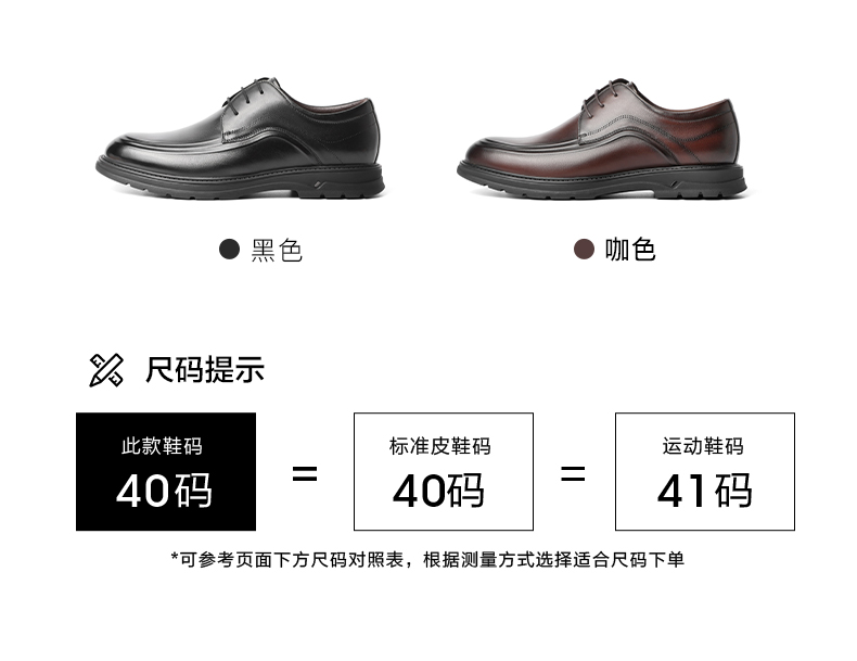 | 风格:商务 | 色系:黑色 | 跟高数值:3CM | 40码鞋宽参考(男):10.5CM | 性别:男子 |