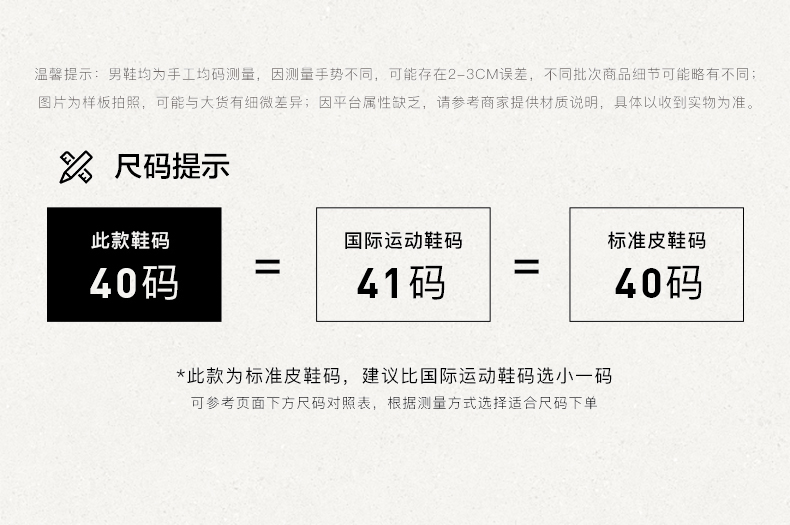 | 风格:商务 | 色系:黑色 | 跟高数值:3CM | 40码鞋宽参考(男):11CM | 性别:男子 |