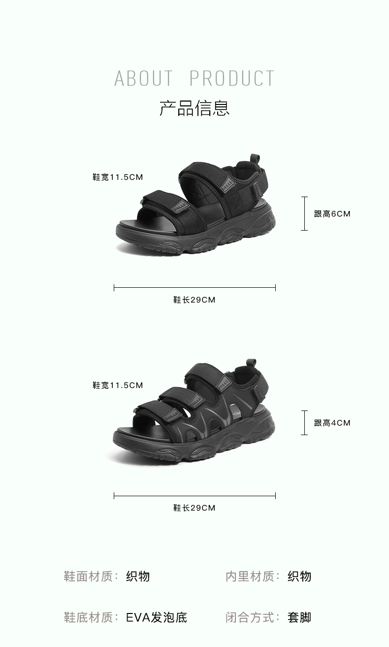 | 40码鞋长参考(男):29CM | 鞋头款式:露趾 | 鞋底材质:EVA | 鞋面图案:纯色 | 鞋跟形状:厚底 |